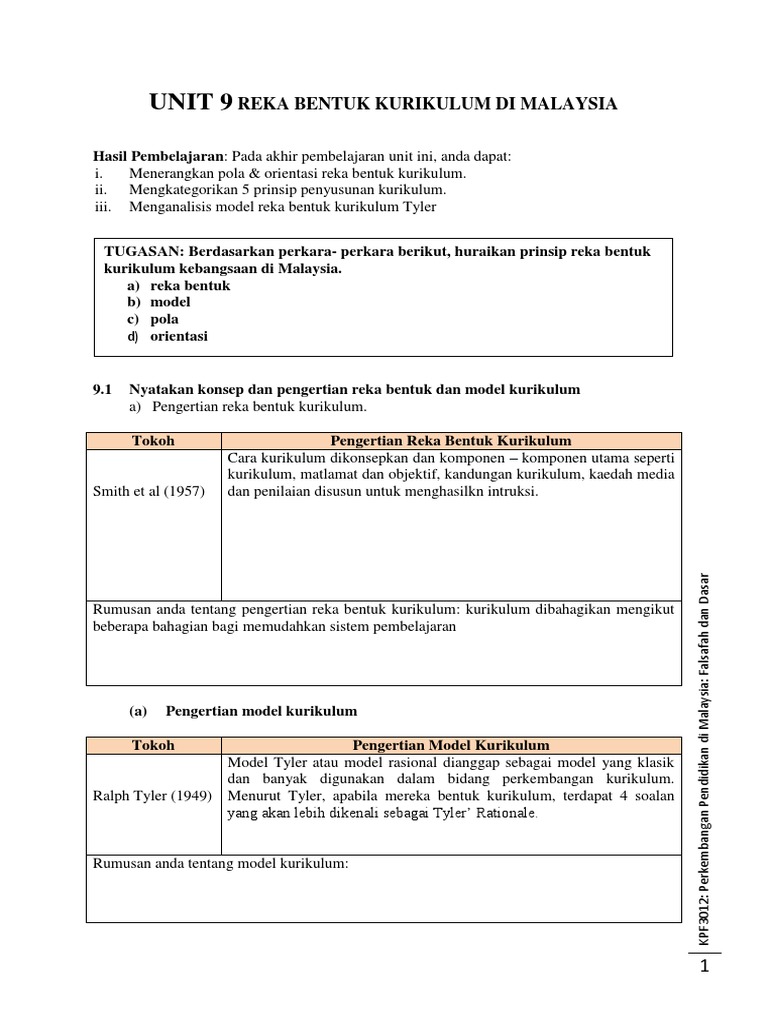 20161105221134unit 9 Reka Bentuk Kurikulum Pdf