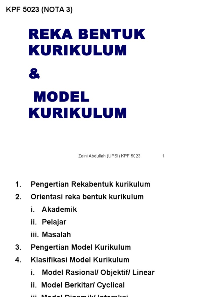 Model Perkembangan Dan Reka Bentuk Kurikulum Pdf
